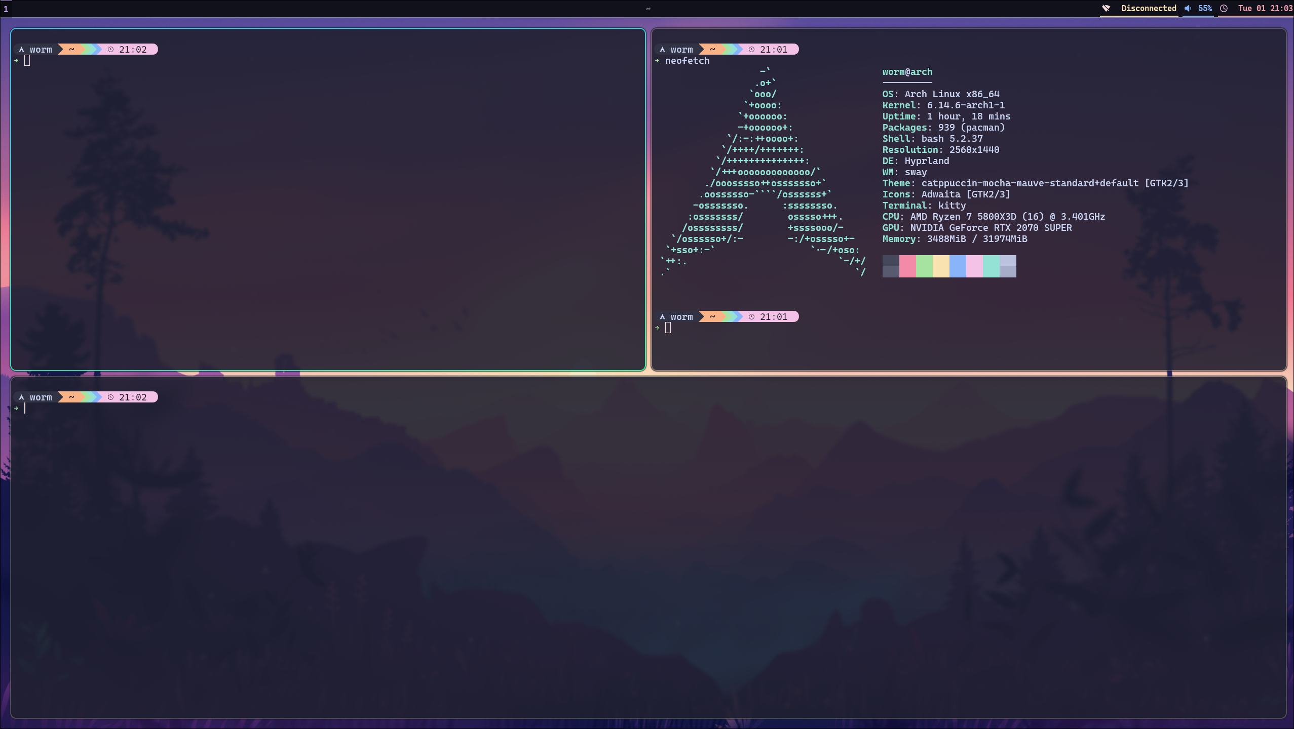 During parental leave in 2025 I finally pulled myself together and installed Arch Linux with Hyprland on myown machines. Then I spend countless hours 'ricing' them. Ie making it look good, and be as efficient as possible.